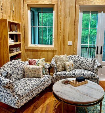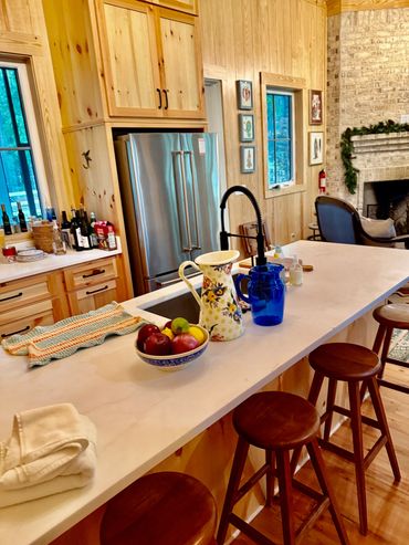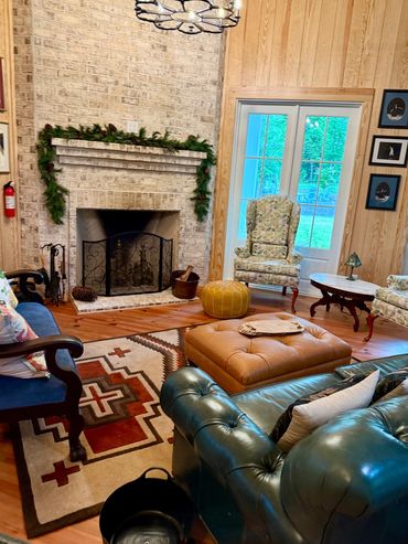 Nestled in serene natural beauty, the Riverhouse Lodge invites you to relax on charming sitting porches and take in the peaceful surroundings. Inside, you’ll find a cozy living and dining area with a fireplace, a fully equipped kitchen, and a comfortable bedroom suite. Upstairs features four private roomettes and two shared baths — perfect for families or group getaways. Enjoy screened porches on both levels and gather around the nearby fire pit for unforgettable evenings under the stars.